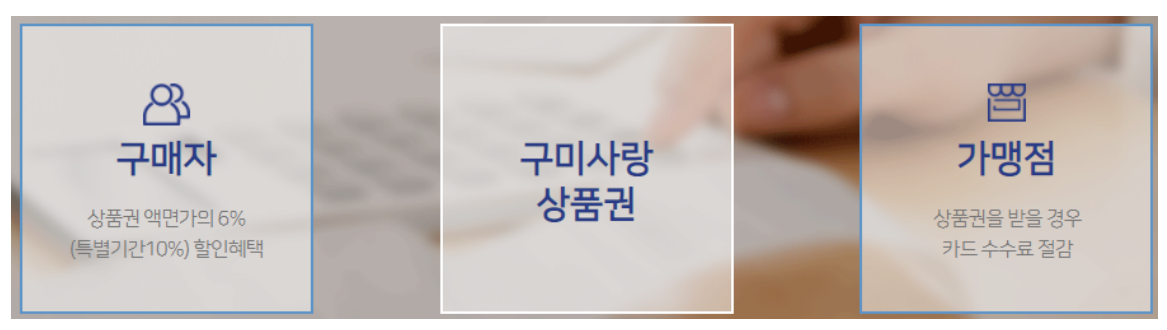 - 개인은 상품권 액면가의 6%(특별기간은 10%) 할인 혜택을 받습니다. 월 2만 4천 원(40만 원 x 0.06) 혜택