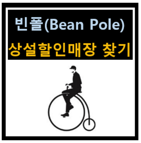 우리나라 트레디셔널 캐주얼의 대표 브랜드를 아시나요? 바로 빈폴(Bean Pole)입니다. 바퀴가 큰 자전거 타는 사람, 빈폴 로고가 박힌 옷은 품질의 신뢰와 고급 이미지를 형성하는데 큰 기여를 했습니다. (사실 최근에는 인기가 조금 떨어진 게 사실입니다만.. 아직까지 부티나는 의류입니다). 빈폴의 상설 할인매장 찾는 방법을 소개하겠습니다.