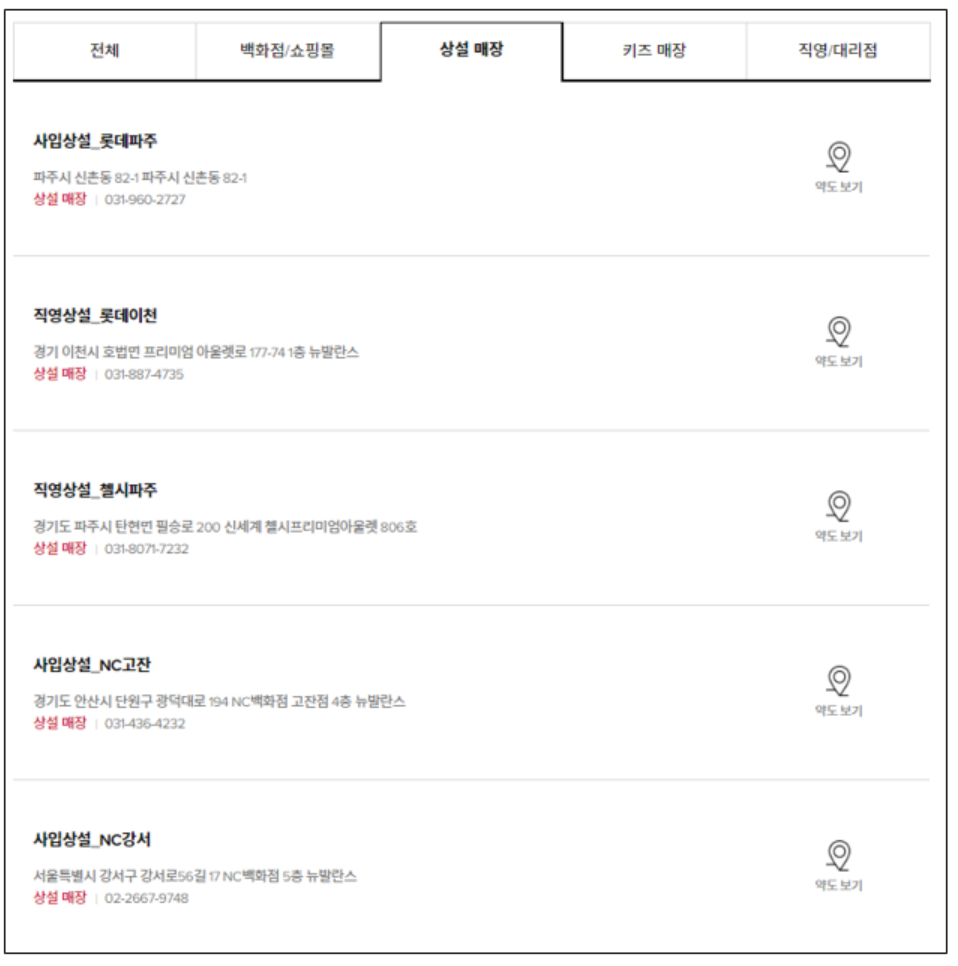 홈페이지로 들어가서 우측에 있는 [매장찾기]를 선택합니다.